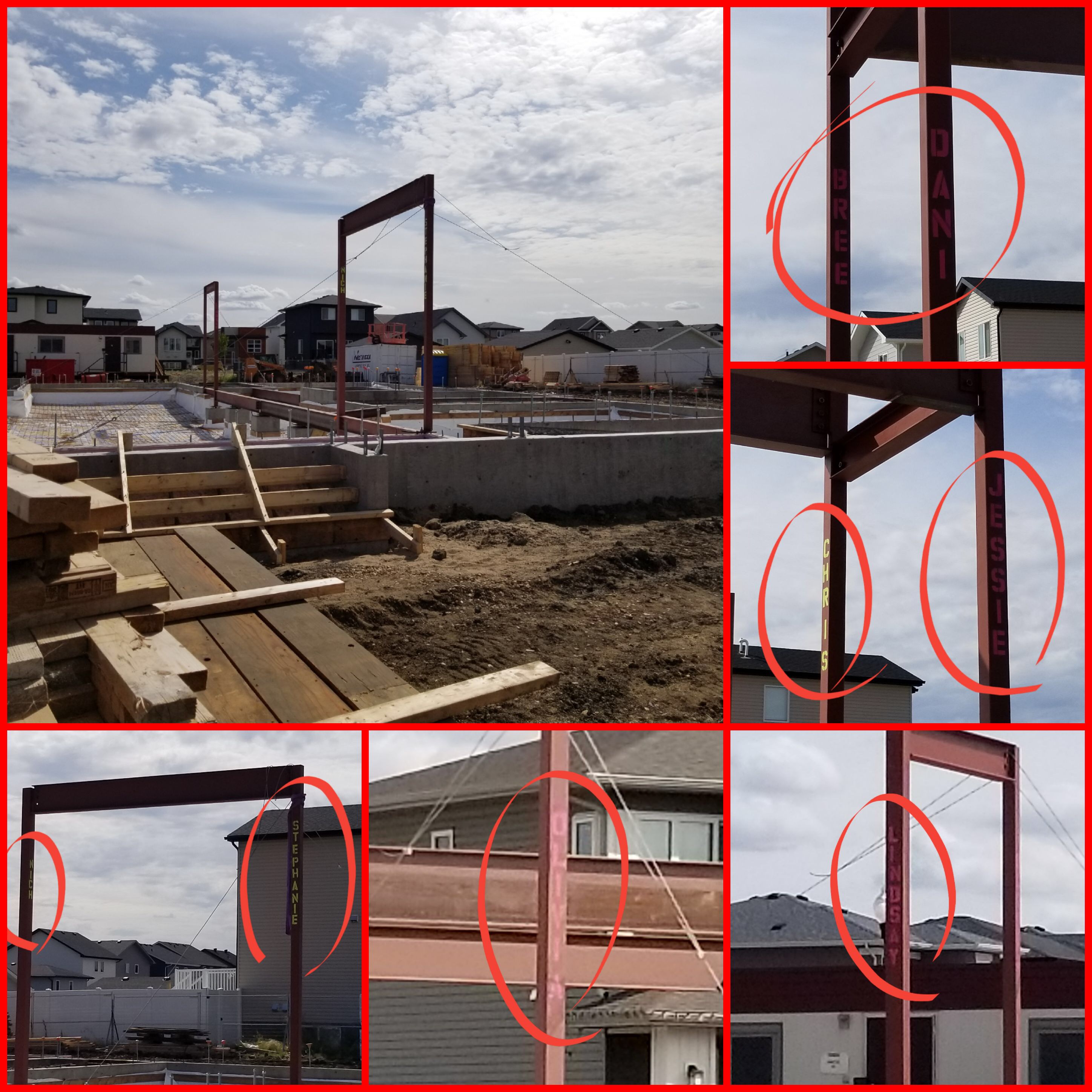 The steel beams and columns are going up. Jason Istead from RJ Steel Erectors is making sure everything is level and plumb and ready for the wood framing scheduled to start next week. If you look closely, you can see names painted on the steel columns. Because eight of the ten condos are sold, the contractors know who will be living in each condo. The fabricator realized we have eight columns and eight known tenants. He thought it would be a great idea to name each column after a resident. He was right!  Dani, Lindsay, Olivia, Jessie, Stephanie, Chris, Bree and Nick:  this is for you!